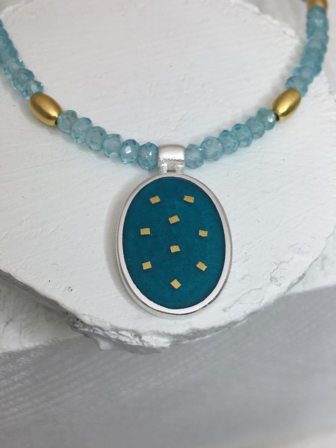 Schmuckbiotop - Ketten -Apathit Emaille Silber Gold