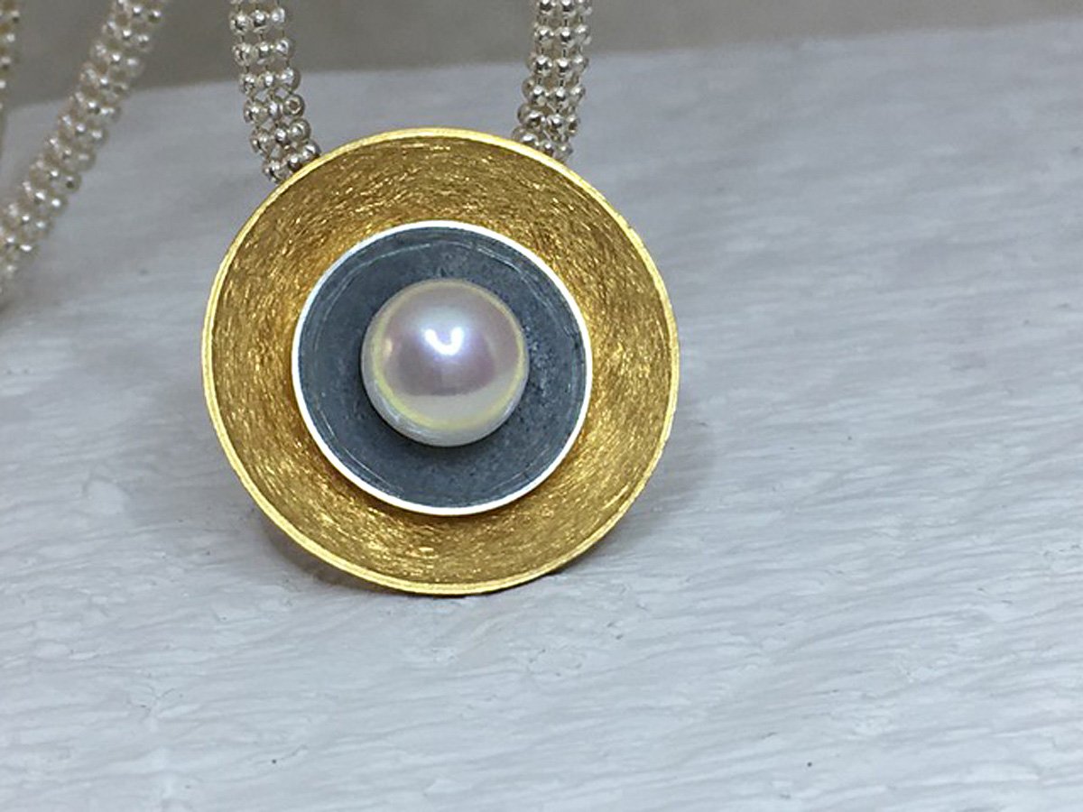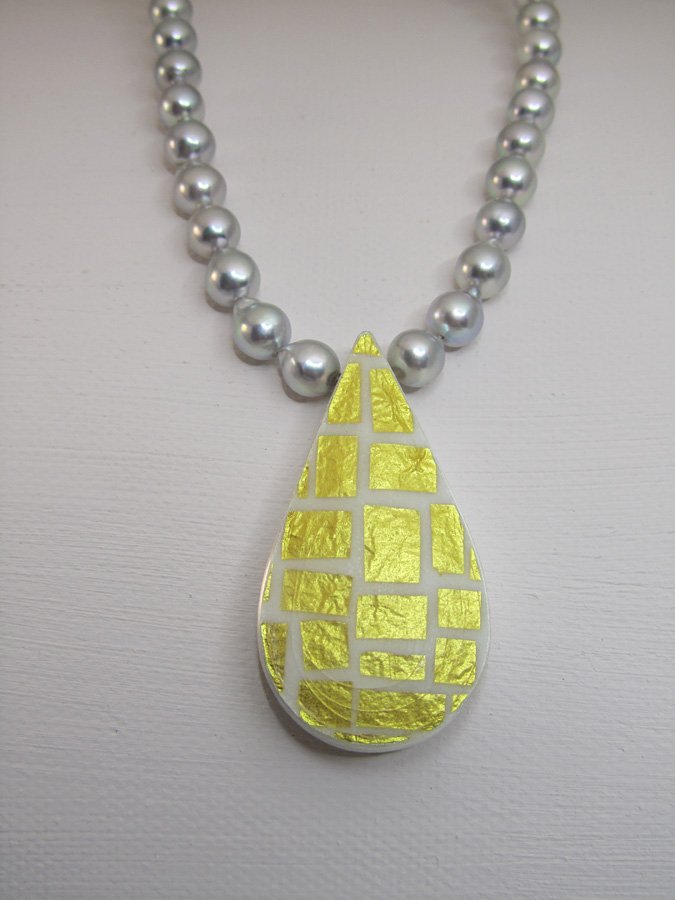 Schmuckbiotop - Ketten - Emaille Grau Silber Gold Perle