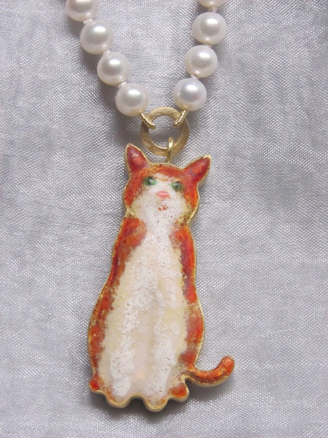 Schmuckbiotop - Ketten - Katze Emaille Perlen Gold