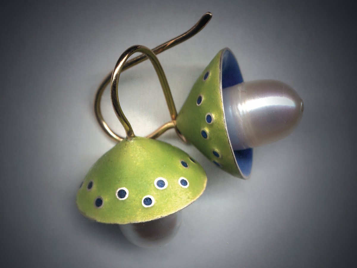 Elke Hackner Schmuckbiotop - Ohrschmuck - Lampen Emaille Silber Gold Perlen
